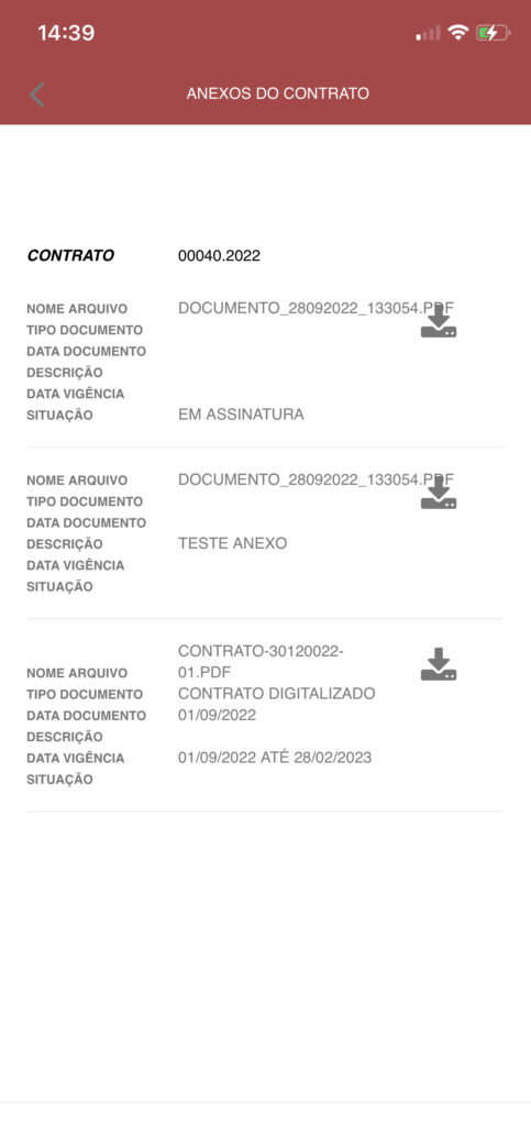 2. Anexos contratuais – é possível obter informações e fazer download de diferentes documentos anexados aos contratos.